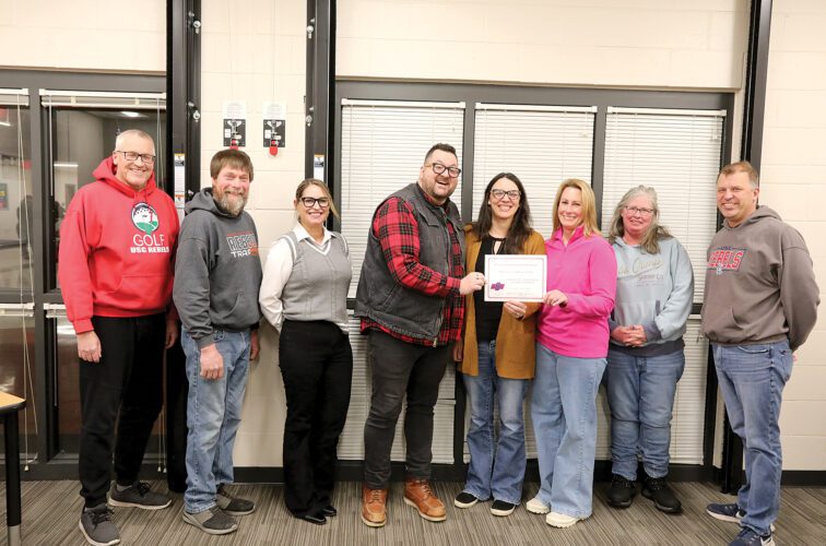 The United South Central School Board took time during their regular meeting on Jan. 20 to recognize the Fine Arts Booster Club with a USC Proud Award.