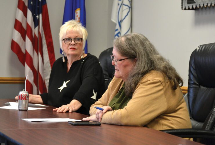 Winnebago mayor Jean Anderson and city administrator Judi Hynes listen to the discussion at the meeting.
