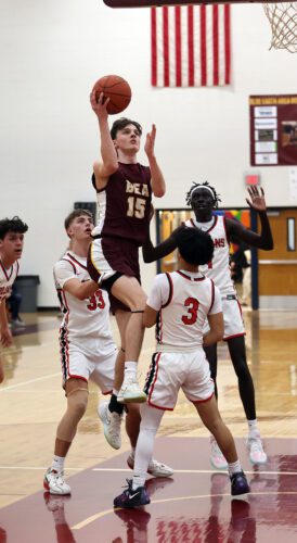 Sully Dahlberg goes to the hoop to score two of his 28 points against Worthington.